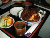 越前に向かう途中、「日本一おいしいナチュラル丼」という看板を見たことありませんか?ナチュラル丼ってなに???と掲示板でも一時話題になったのですが、写真を撮ってきました。実態はソースカツ丼のカツの中にナチュラルチーズが入っていることでこの名前がついたそうです。その他、パリ丼なるものもあり、これはメンチカツがのっています。私が食べたのは何ライスだったっけな、さっきまで覚えてたんだけどな・・・ 最近記憶中枢がイカレテきています。それはオムライスの上にカツがのっていて、その周りをいろいろな具が囲みます。名前を思い出したら写真を紹介します。すごいよ!! とにかく両者ともかなりのボリュームで、かなり空腹にしていかないと完食できません。今度挑戦してみたら? |